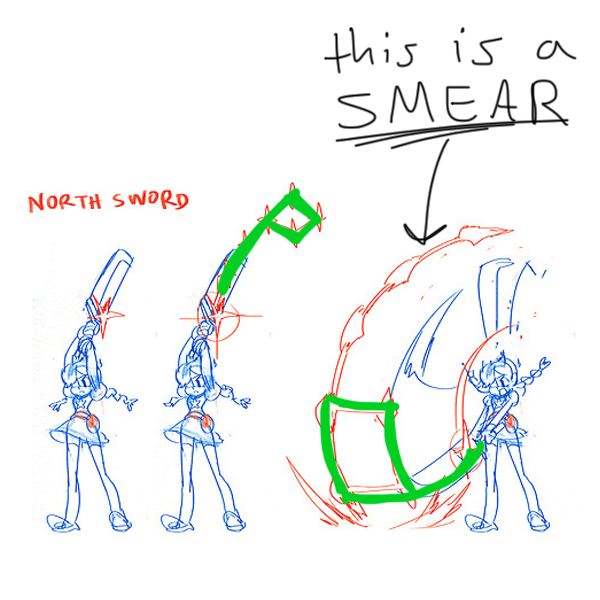 Check the spoiler above; that's what I meant. I get that it's supposed to be a smear frame, but I just don't see it as consistent.